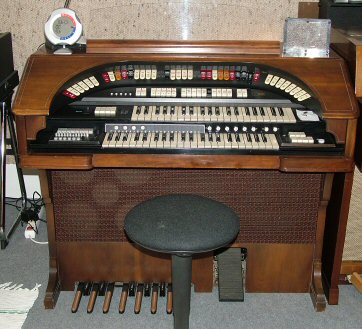 The horse-shoe console is very pretty and has also a built-in Leslie speaker. That's why I decided to remove all electronic parts. I replaced the keyboards with a wooden keyboard from a pipe organ which I found at ebay. This new keyboard reused parts of the old contact switches and were connected to a Midi controller (MIOS see http://www.mcapps.de/ ). Well, I won't do this again, I massively underestimated the mechanical work for replacing manuals!